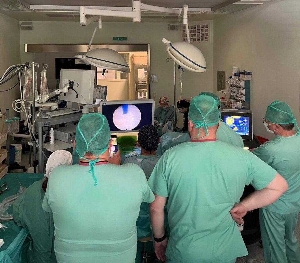 To były dwa intensywne dni szkoleniowe, podczas których przeprowadzono łącznie 10 zabiegów operacyjnych (HoLEP i RIRS). Uczestnicy mieli możliwość obserwacji procedur na żywo, analizy przypadków klinicznych oraz bezpośredniej wymiany doświadczeń.